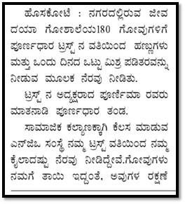 Location : Jeevadaya Cow shed, near Nandashree Kalyanamantapa, Hoskote – 562114