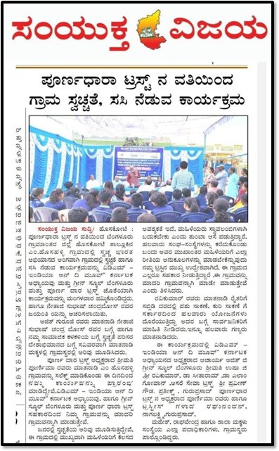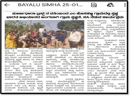 On 23/01/2024, Poorna Dhara Trust conducted a village cleanliness and plantation program in Hosahalli village of Hosakote Taluk along with VDM India on the move and Green School Bangalore. Netaji Subhash Chandra Bose’s birth anniversary was celebrated. In this program, Founder President of VDM India Sri Acharya Ajith ji and all the office bearers of his organisation, Mrs. Usha ji of the Green School, and Sri Ravi Kumar, Dr. Seetharam Veternary, Dr.Elangovan were present. Sri Praveen Gowda fromAsare Seva Trust, Prateeksh, Guru Prasad and school children participated and made the program successful.