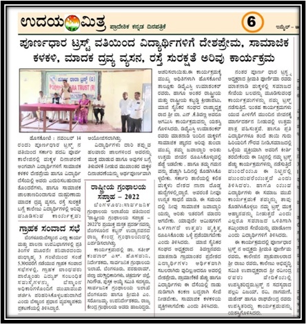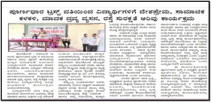 Featured in Newspaper about ಮಕ್ಕಳಿಗೆ ರಸ್ತೆ ಸುರಕ್ಷತೆ ,ಡ್ರಗ್ ಅವರೇನೆಸ್,ಮತ್ತು ಸೈಬರ್ ಕ್ರೈಂ Program