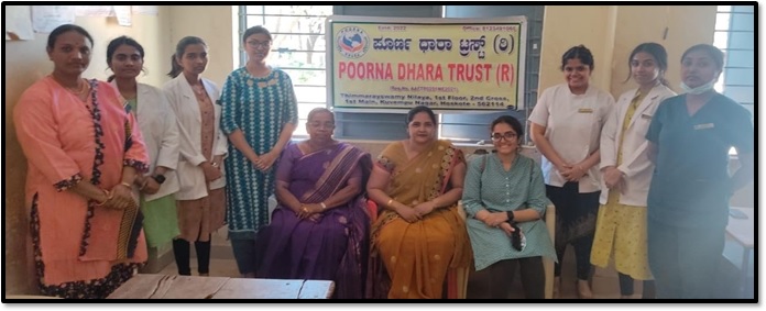 On 24/2/23, Poorna Dhara Trust conducted a dental camp at Government Kannada School, GKBMS Hosakote. RV Dental College staff conducted dental checkup to 350 school students. School headmasters, president of the trust and members of the trust participated in the program and made the program a success.