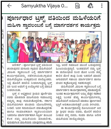 On 02/01/23, Poornadhara Trust conducted a guidance program for women of Masuru village of Chandapur on women’s self-reliance. All the women of the village participated with enthusiasm. Sewing training was being given here and informed about self employment by the trust.